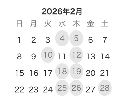 ※2026年2月は下記にて営業させていただきます。